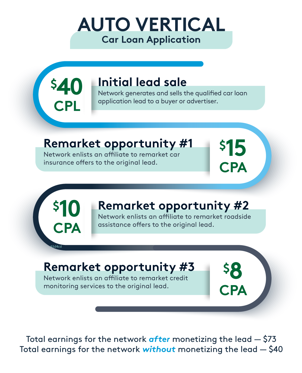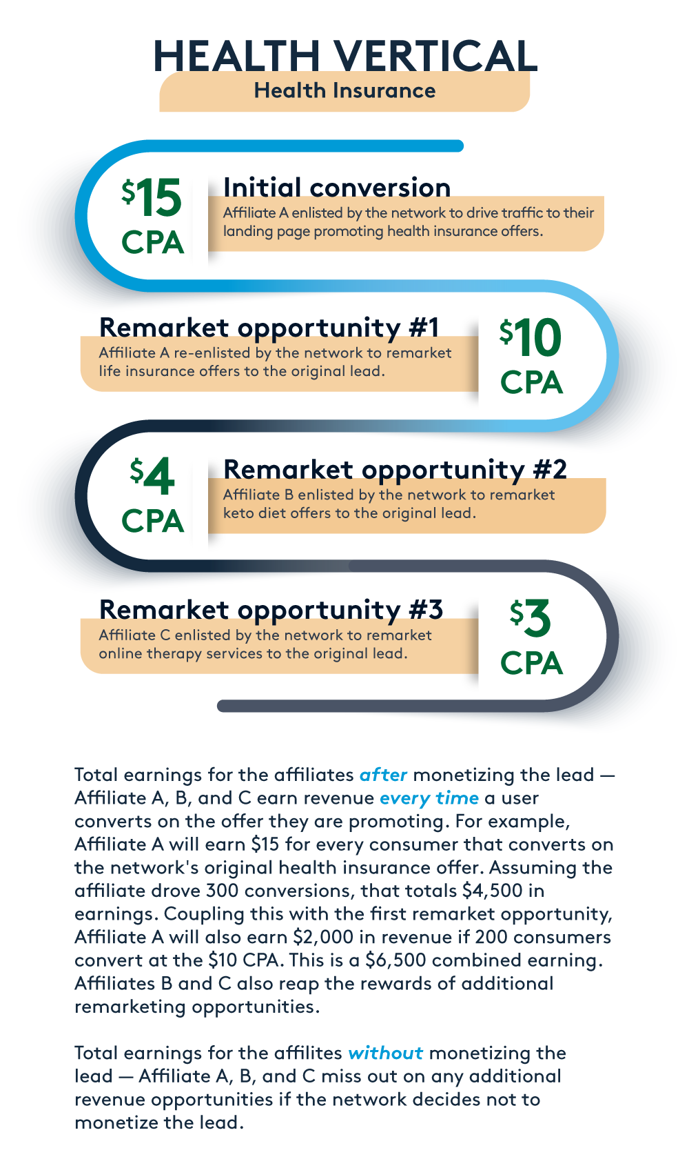 By combining the original lead sale price with the revenue from additional campaign conversions, networks gain access to a profitable revenue stream. Here are two examples of lead monetization across different verticals: