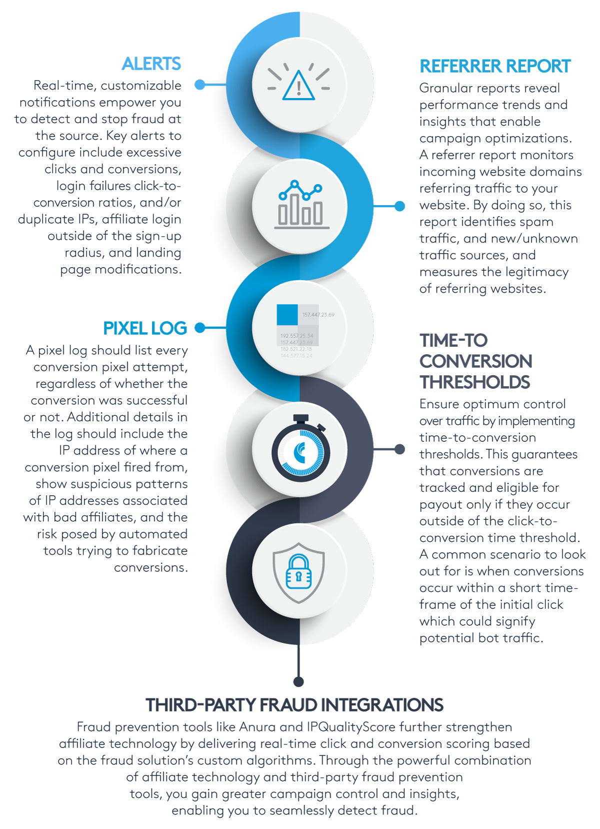 To combat fraud, performance marketers can rely on affiliate marketing technology to proactively validate that affiliate conversions are authentic while also blocking high-risk and suspicious traffic in real time.