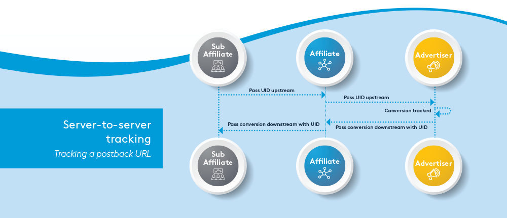 This is how server-to-server tracking works. An anonymous consumer’s interaction is assigned a unique ID (UID). In place of a cookie, a click ID or session ID can be stored server-side, or within the advertiser’s first-party cookie, until the point of conversion. When the conversion occurs, the consumer’s click is attributed to their conversion through the UID. Because server-to-server tracking does not depend on cookies that can be blocked by a browser or cleared by a consumer, this tracking method is the most accurate approach to measure affiliate marketing campaigns.
